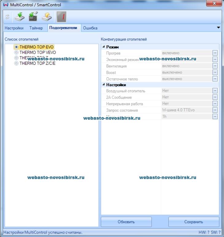 Салонный таймер Webasto MultiControl Car рекомендован для жидкостных подогревателей серий Thermo Top C, E, Evo и воздушных отопителей Air Top. Таймер имеет TFT-дисплей, тонкий корпус и современный дизайн, простое и понятное меню на русском языке. В числе функций недельный таймер с возможностью настройки до трех включений в течение дня, термодатчик, режим подогревателя или вентилятора, настройка интенсивности работы подогревателя при запуске.